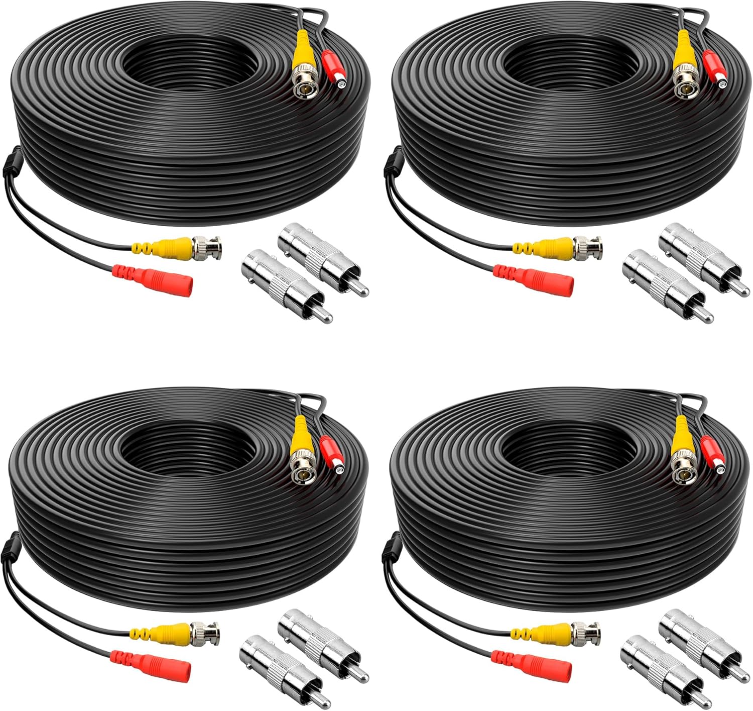 ABLEGRID® 4 Pack 100ft bnc Video Power Cable Security Camera Cable Wire Cord for CCTV dvr Surveillance System (Included 2X BNC to RCA connectors with Each Cable)