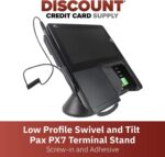 • The Low Profile Swivel and Tilt PAX Px7 POS system stand, Screw-in and Adhesive is a metal credit terminal card holder custom designed for the PAX Px7 payment terminal to make your in-store card purchases more stable and secure