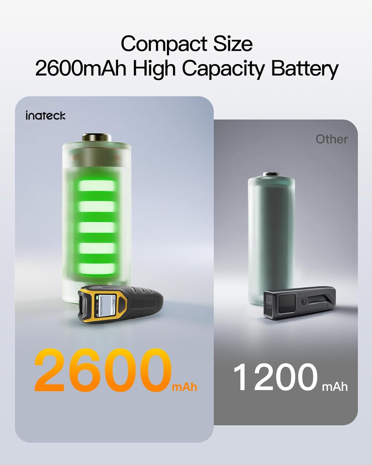 • 2600mAh High Capacity Battery: The Inateck wireless portable barcode scanner features a 2600mAh high capacity battery that supports up to one week of continuous use with low charging frequency. Its battery capacity is twice that of most portable scanners, offering greater convenience and peace of mind during use