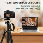 Jelanry Camera Tether Cable USB C to USB C Dual Straight Head, for Power Delivery, 5Gbps Data Transfer, Charging Between Camera & Computer+Tethering Cable Lock Clamp for Sony Canon Nikon, 16.4 feet/5m