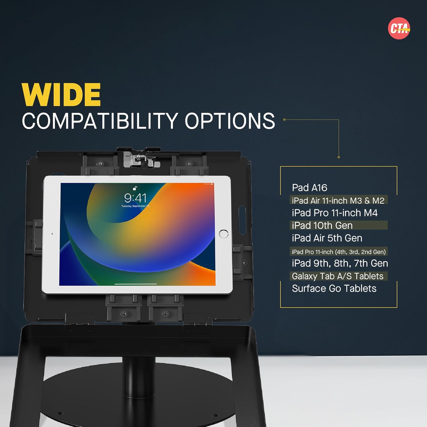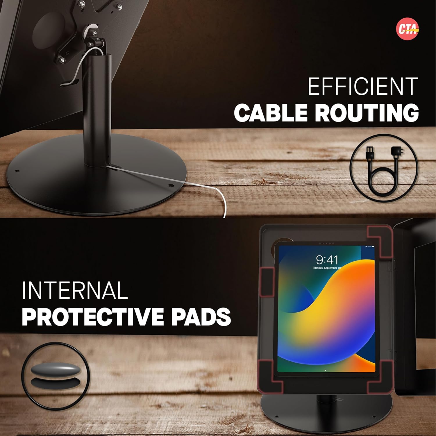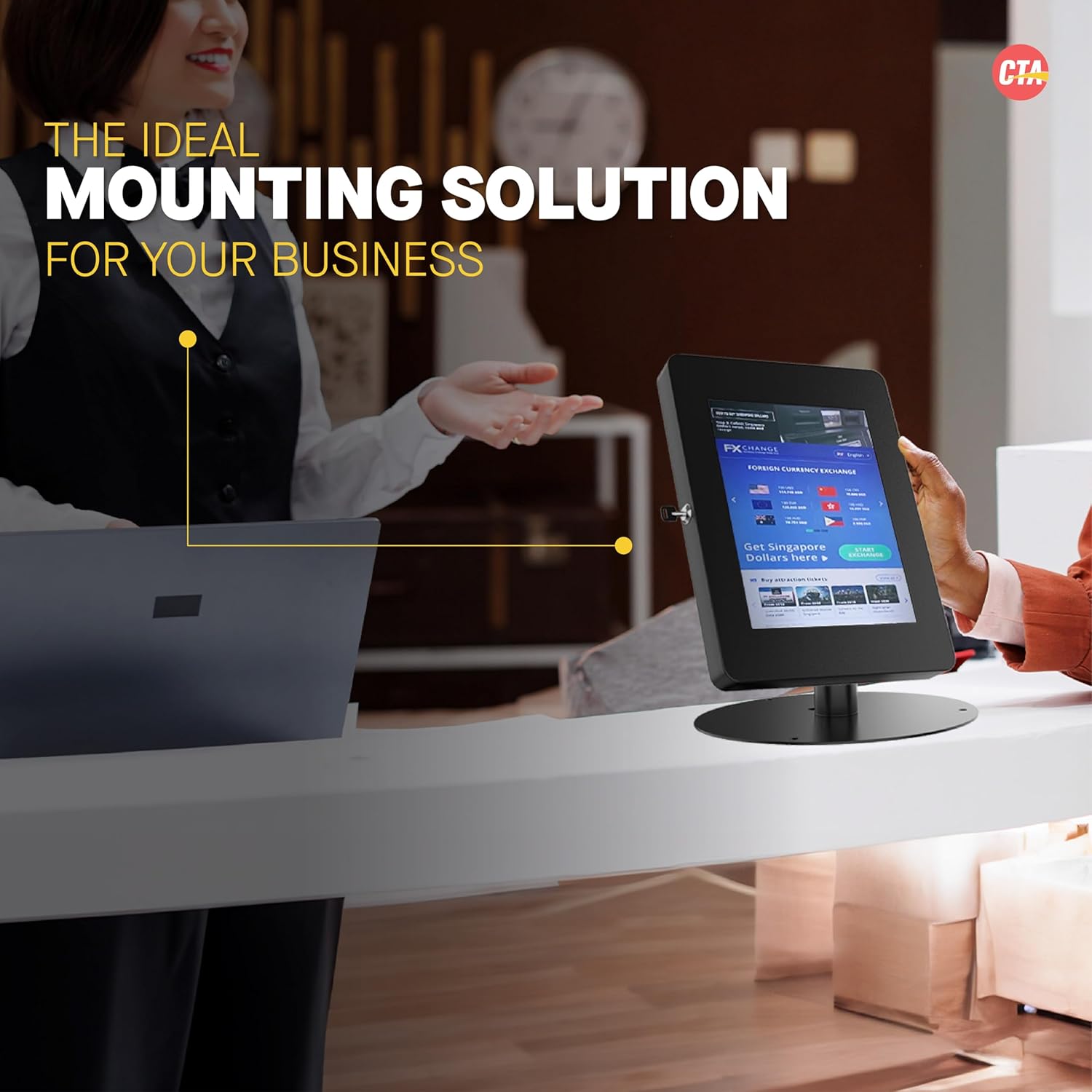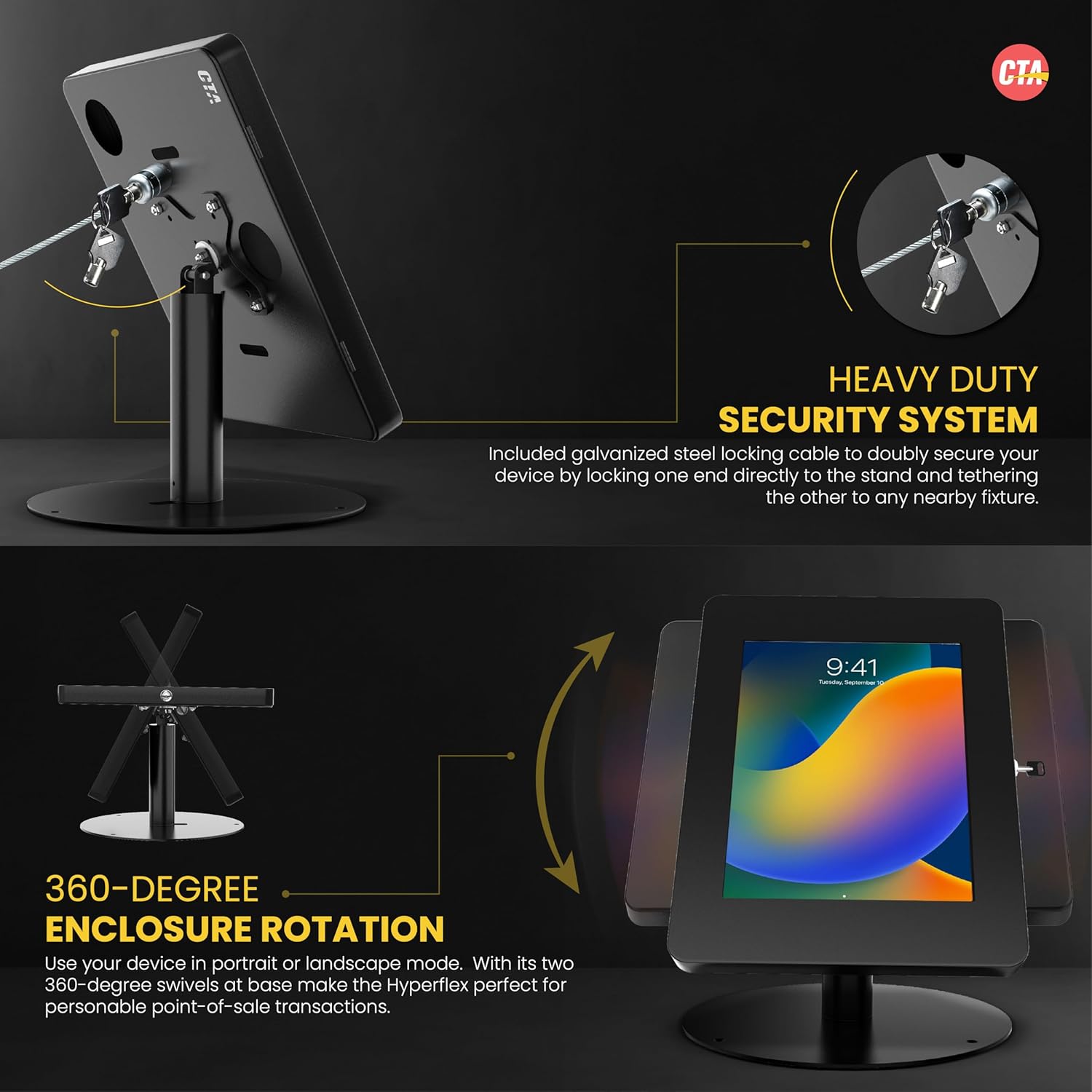 Home Office Technologies Premium Retail POS Stand – CTA Upscale Tablet Kiosk Stand with 360 Rotation & Locking