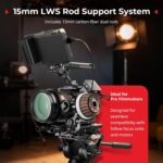 • 【15mm LWS Rod Support】The base plate features 15mm diameter and 60mm spaced rod holes that allow you to mount a follow focus, matte box, lens support, or other accessories. The plate is contoured to fit with shoulder pads while also remaining lightweight.