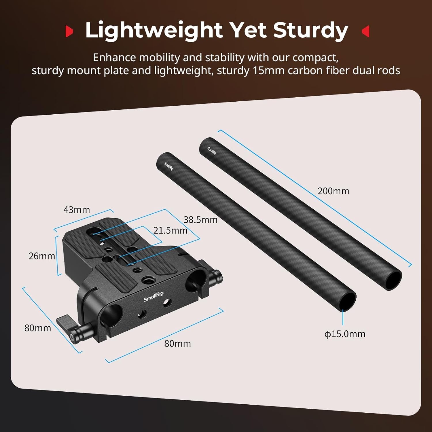 • 【Package Include】You can get 15mm carbon fiber rod (20cm) x 2, base plate x 1, 1/4″-20 screw x 3, 3/8″-16 screw x 1, allen wrench x 1