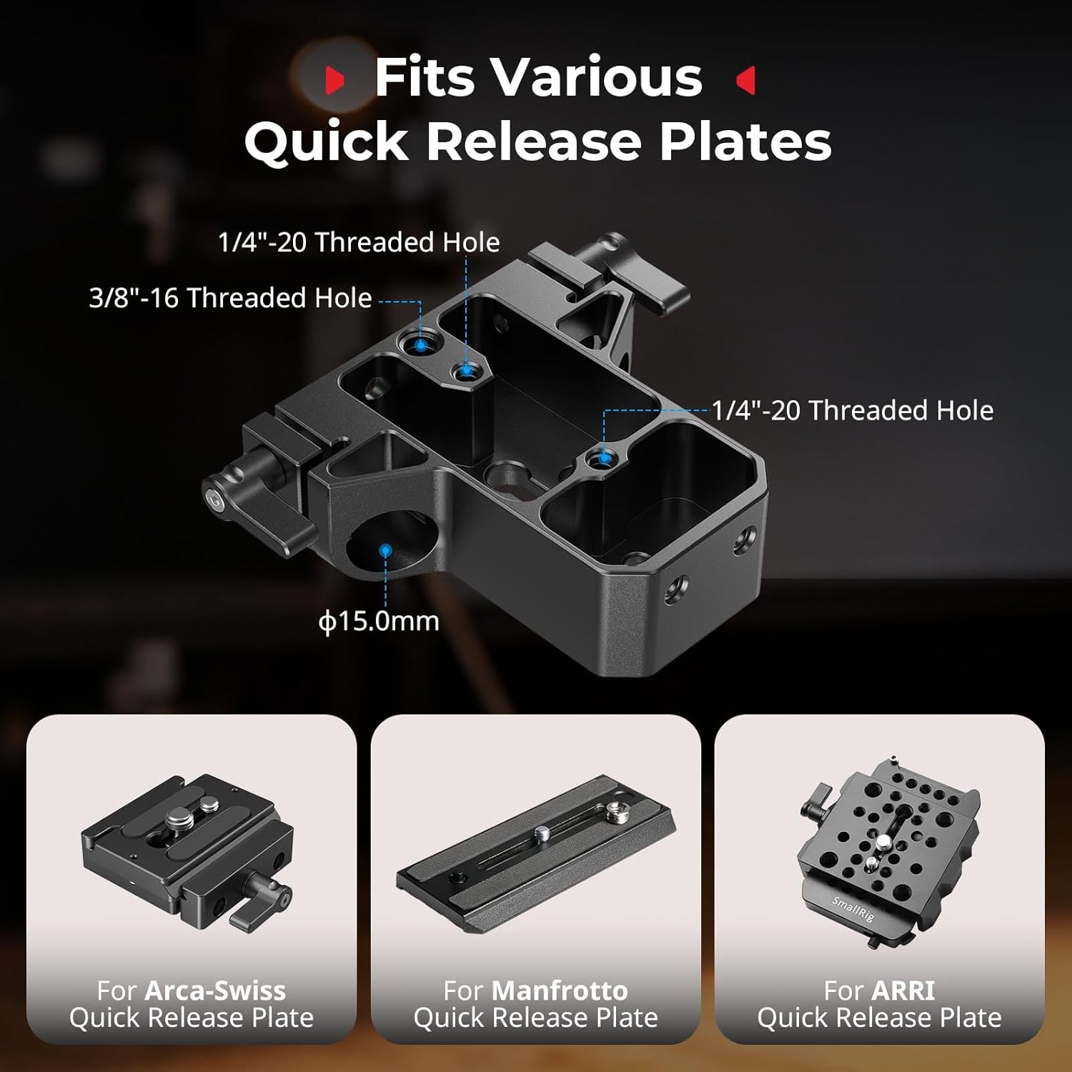 About this item With 1/4”-20 & 3/8”-16 threads on bottom, this15mm rod base plate can be attached to any tripod